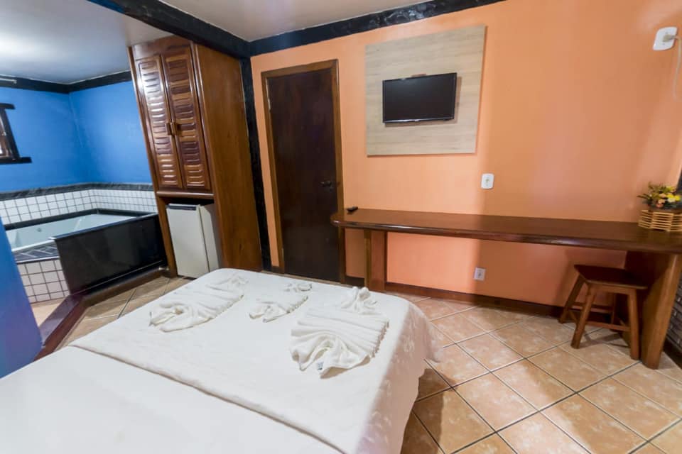 Equipado com ar condicionado, banheira de hidromassagem, tv, telefone, frigobar, internet